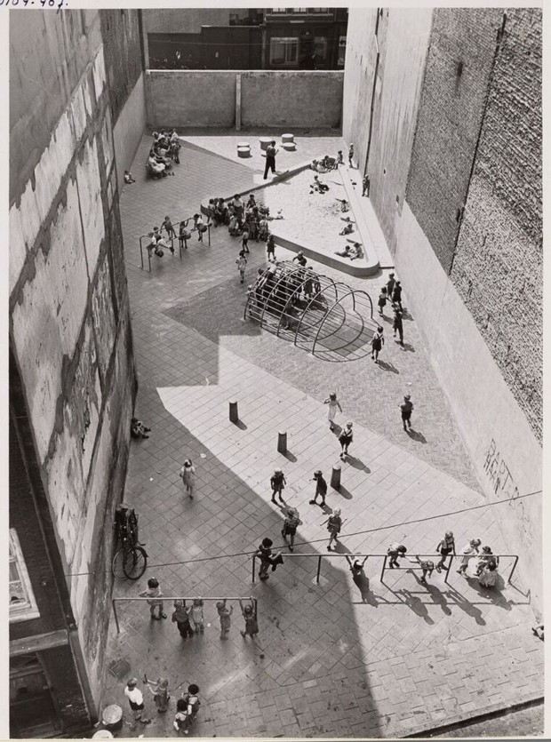 Van Eyck was a member of a variety of avant-garde architecture groups. But he spent most of his career working for the Amsterdam public works department under a woman named Jacoba Mulder. He designed 700 playgrounds for the city, beginning in 1947. These really came about primarily because neighborhoods asked for them. They had a park that people weren’t using, or a vacant lot, possibly because of war [damage]. They wrote to the public works department.