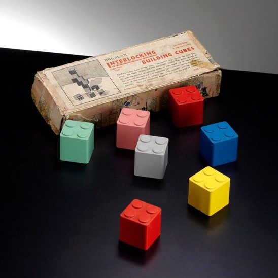 He came up with the idea of the interlocking cube. The four studs on top would interlock with the open bottom, so it made a bond. In 1940, he gets a British patent for the “interlocking building cube.” The market’s there, but he’s pretty small-time, and he can’t make any of them during the war, because all the plastic had to go to the war effort.