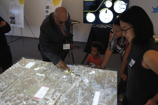The models are all available for the public to explore—and see how their own lives might benefit or suffer from certain plans. On the touchscreen, for example, viewers can point to a specific part of the city and have the computer tell them how many jobs they can get to from that spot via proposed public transportation. They can then fiddle with the model to see how different transit systems and route networks affect their commute.